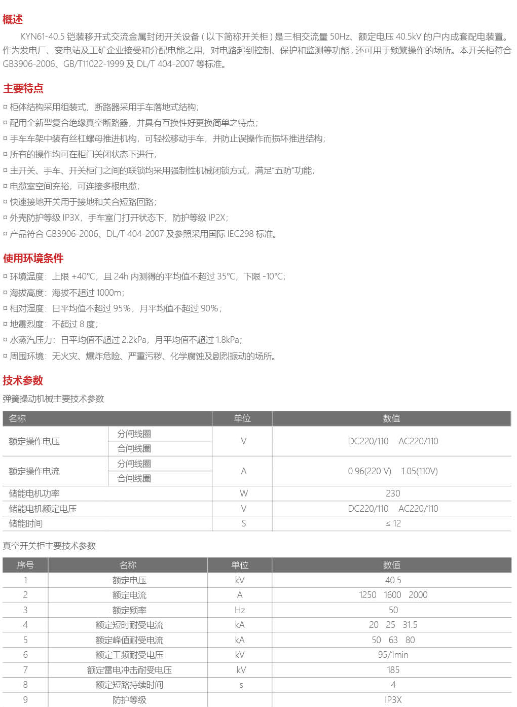 KYN61-40.5铠装移开式交流金属封闭开关设备