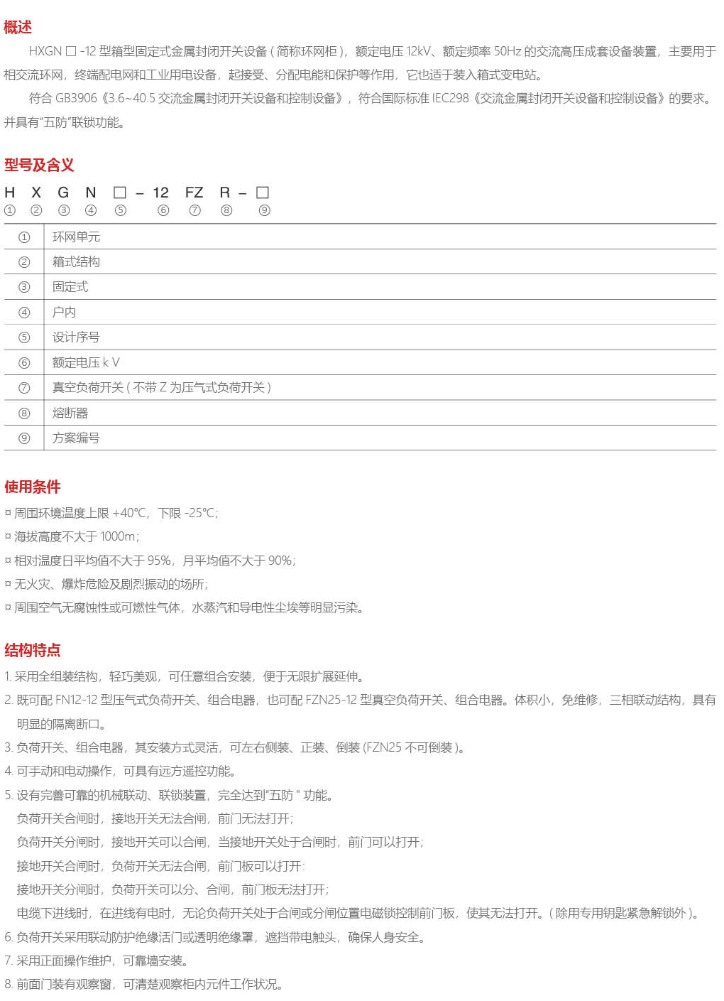 HXGN□-12箱型固定式交流金属封闭环网开关设备