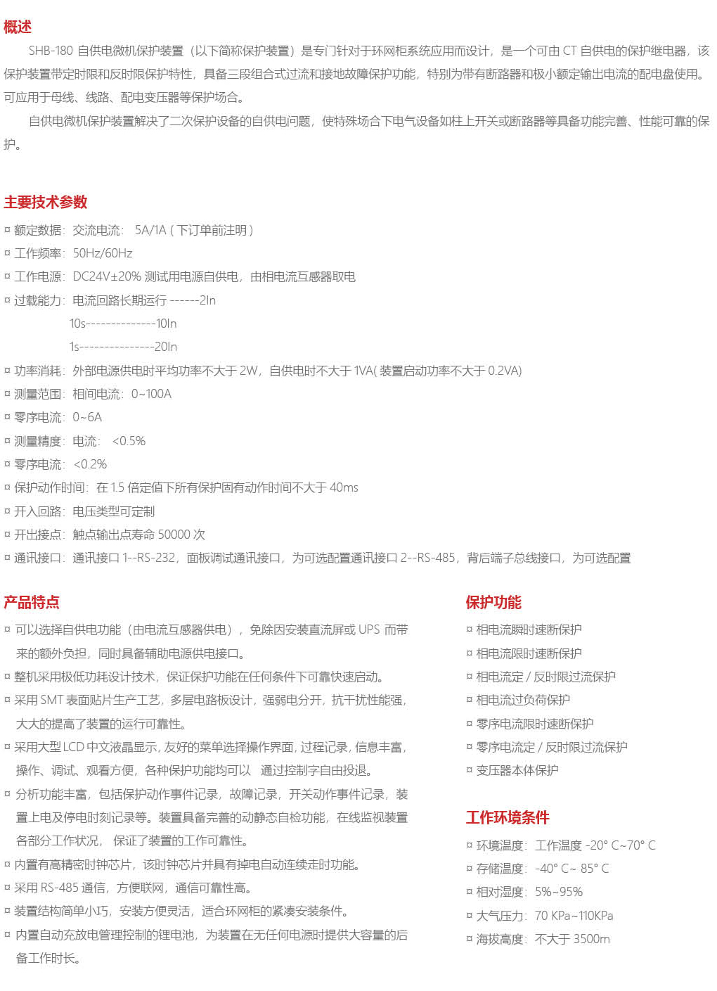SHB-180自供电微机保护装置
